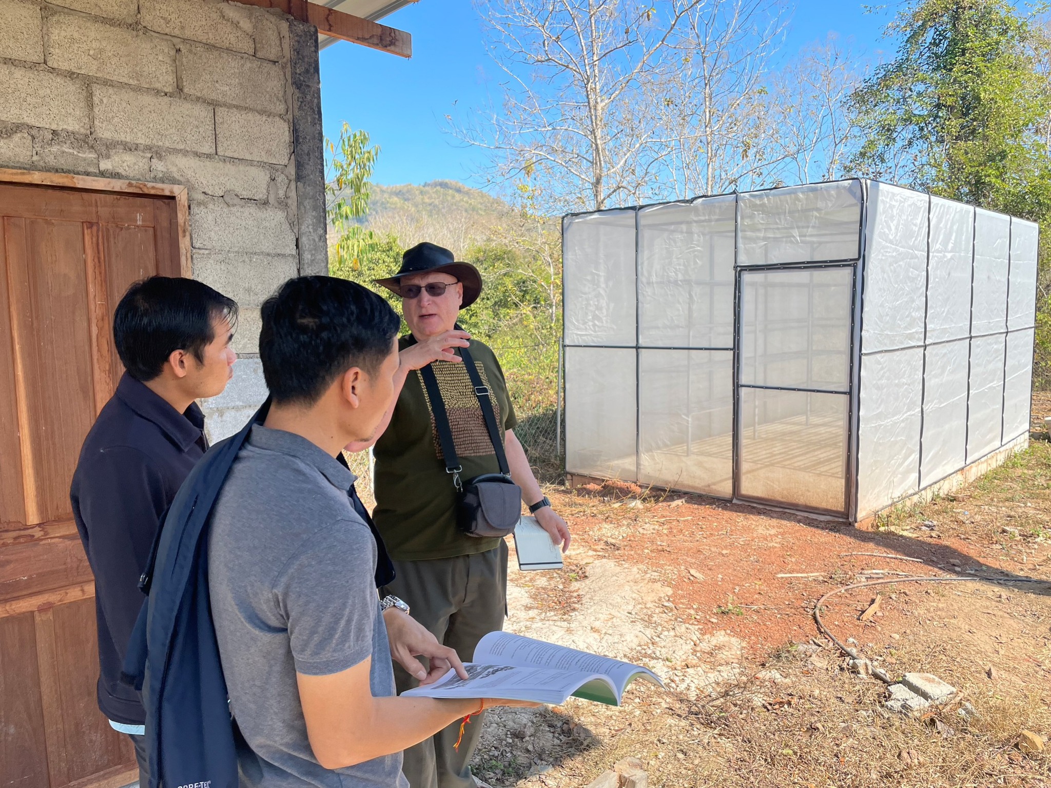 At the beginning of January 2023, Dr. Stephen Elliott and Dr. Prasit Wangpakapattanawong of Forest Restoration Research Unit, Chiang Mai University (FORRU-CMU), visited Souphanouvong University (SU) in Luang Prabang, Lao PDR. The purpose of the trip was to work with SU's Faculty of Agriculture and Forest Resource to establish FORRU-like unit at SU. This first day visit was to inspect a nursery being construted to accommodate seed storage and germination to be used for forest restoration. The FORRU-CMU team also worked with SU lecturers on revising the new SU's forest restoration course under the FRAME project. The trip is financial supported by the FRAME project under the ERAMUS+ Program of the EU.